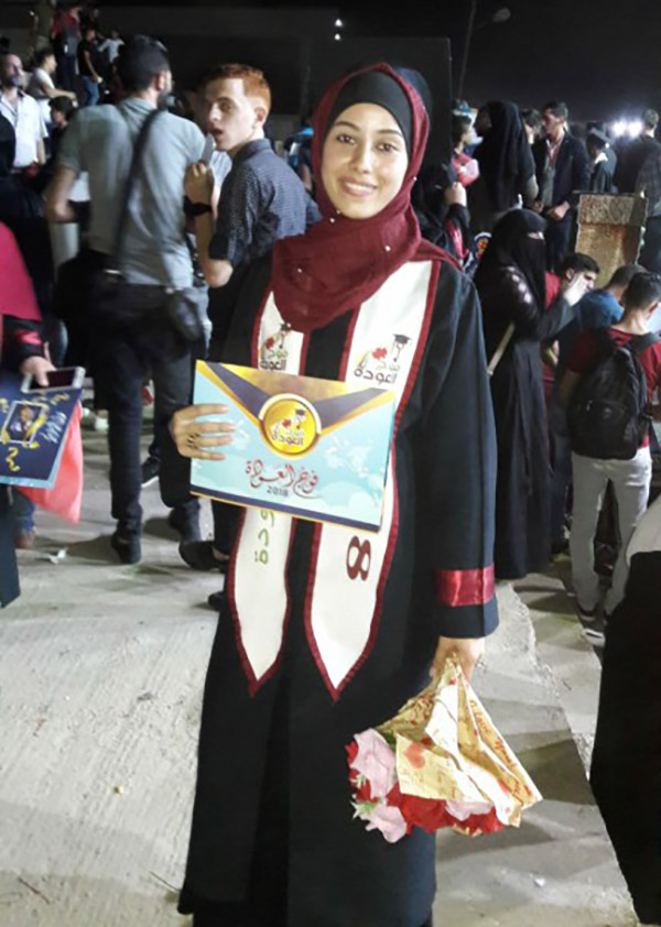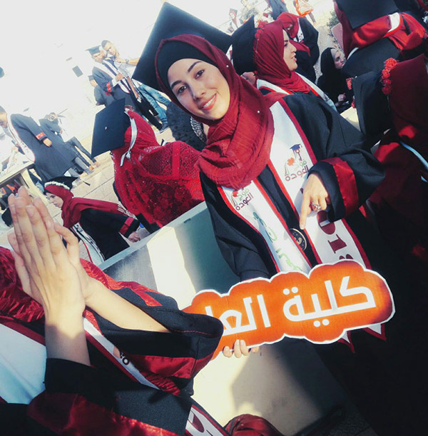 إستراحة نادى الضباط- فوج العودة- تخرج الطالبة منال عبدالله يوسف الأغا في جامعة الأقصى- كلية العلوم التطبيقية تخصص الأحياء وأساليب تدريسها، وألف مبارك