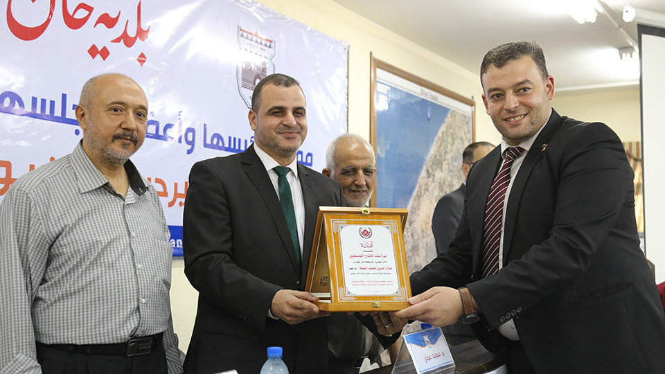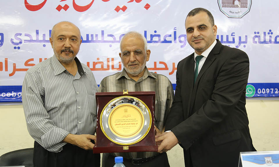 بلدية خان يونس تكرم رئيسها السابق م. الأسطل وتحتفي برئيسها الجديد م. البطة