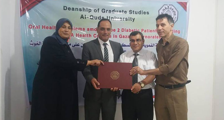 الباحث عماد ابراهيم حامد القدرة ينال درجة الماجستير في الصحة العامة إدارة بعنوان:
