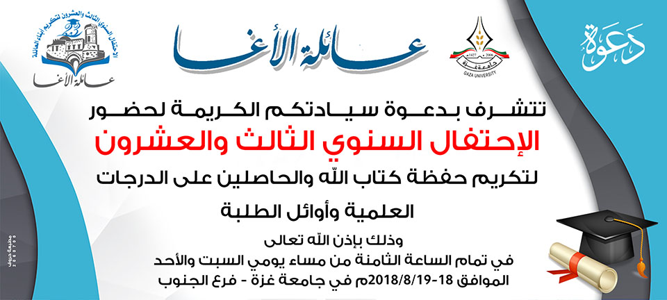 يسعدنا أن نعلن لكم عن موعد ومكان الإحتفال وكشف الأسماء لأبناء العائلة المقرر تكريمهم، وسيكون على مرحلتين