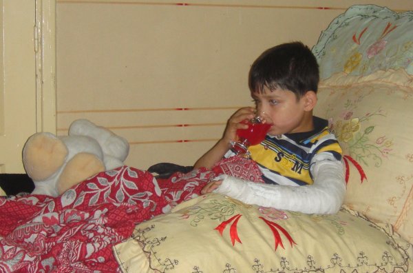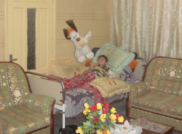 صورة للطفل اسلام في منزله بعد 3 أيام من خروجه من المشفى