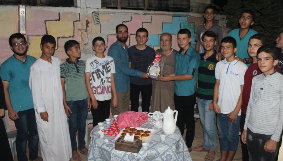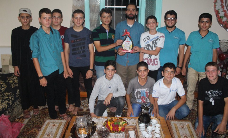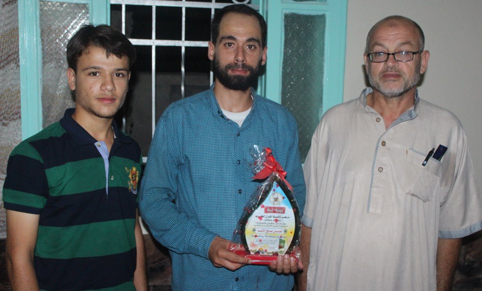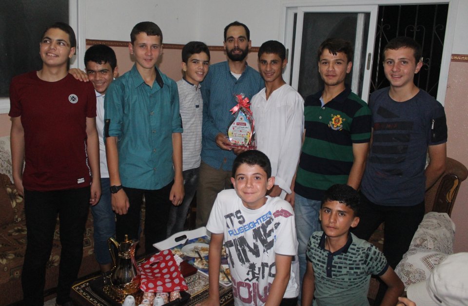 صورة جماعية من داخل منزل الطالب محمد حمدان الأغا