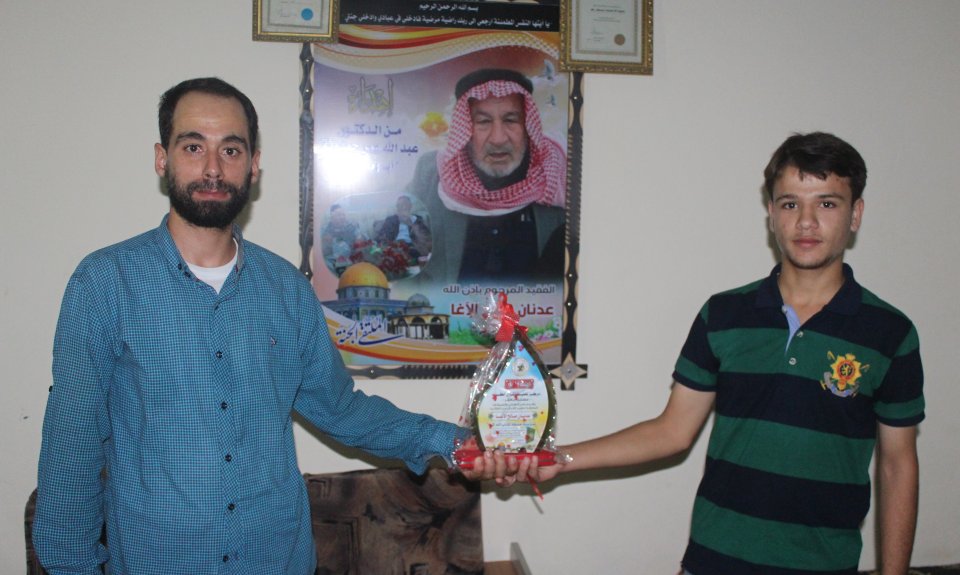 صورة جماعية من داخل منزل الطالب عدنان صالح الأغا