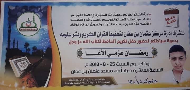 الرئيسة/متفرقات/تكريم رمضان عزمي الاغا لحفظه القران الكريم متفرقات تكريم رمضان عزمي الاغا لحفظه القران الكريم تاريخ النشر : الأحد | 02-09-2018 | 23:32 4000 تكريم رمضان عزمي الاغا لحفظه القران الكريم الحافظ لكتاب الله بين والده واشقاءه اضغط هنا للتواصل أو التعرف على الشاب رمضان عزمي رمضان صالح عثمان الأغا يمكنك تلقي أحدث الأخبار أول بأول بانضمامك لإحدى مجموعات الواتساب الخاصة بالعائلة من خلال الضغط هنـا اظهر المزيد
