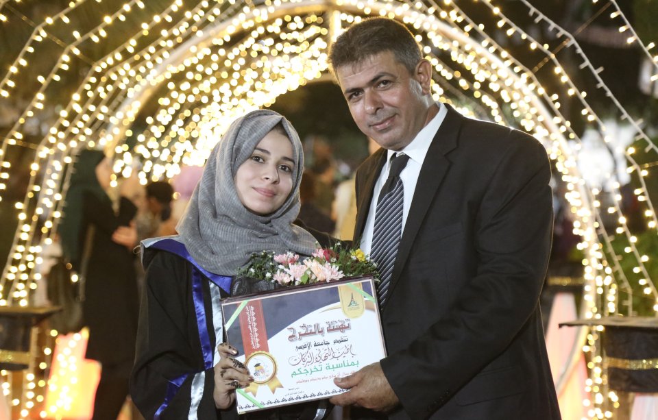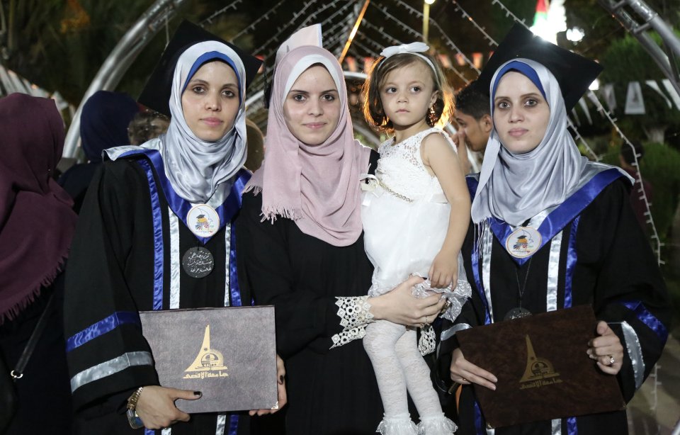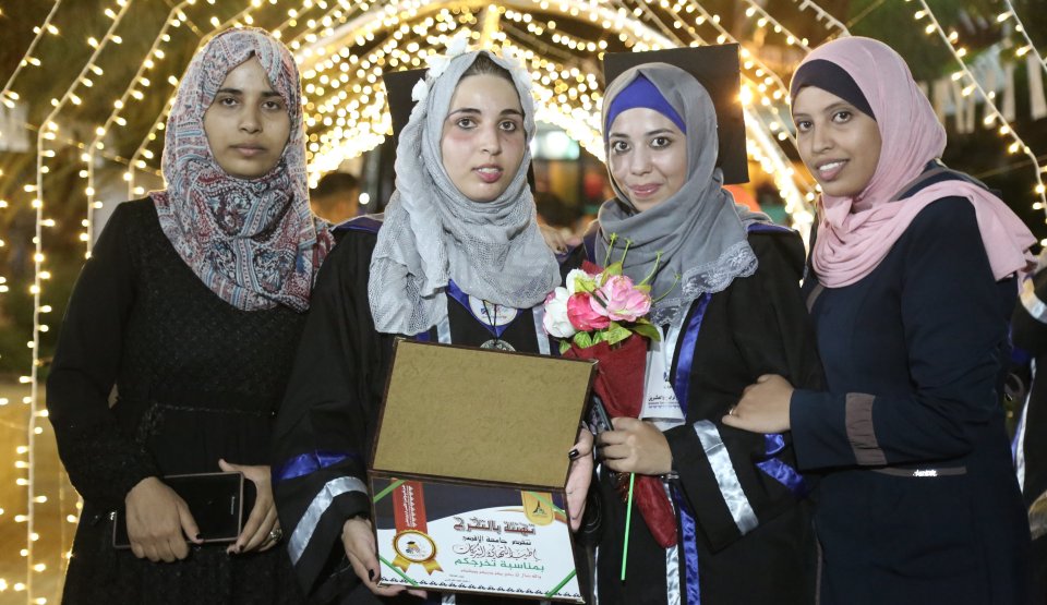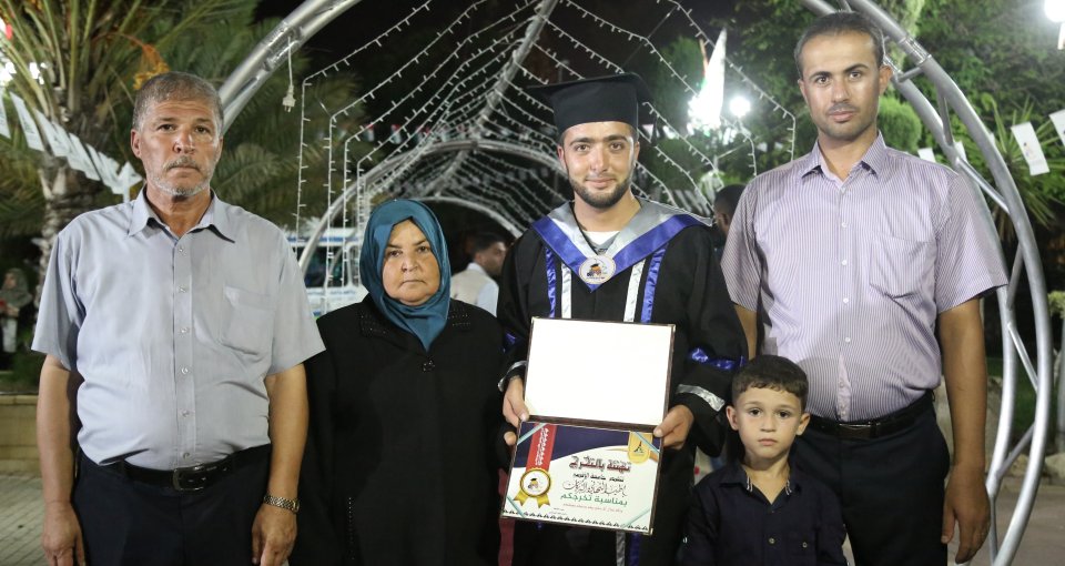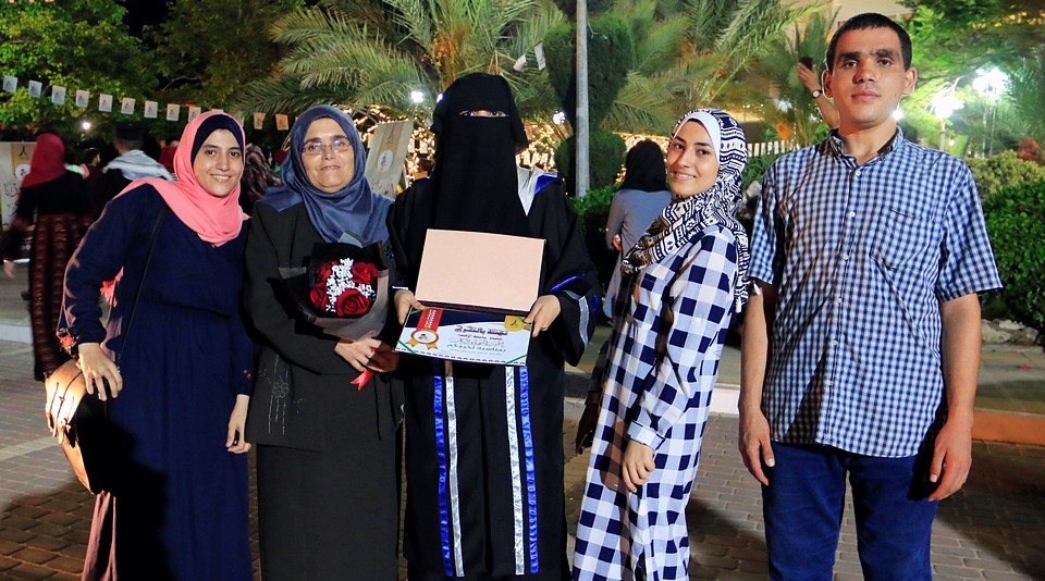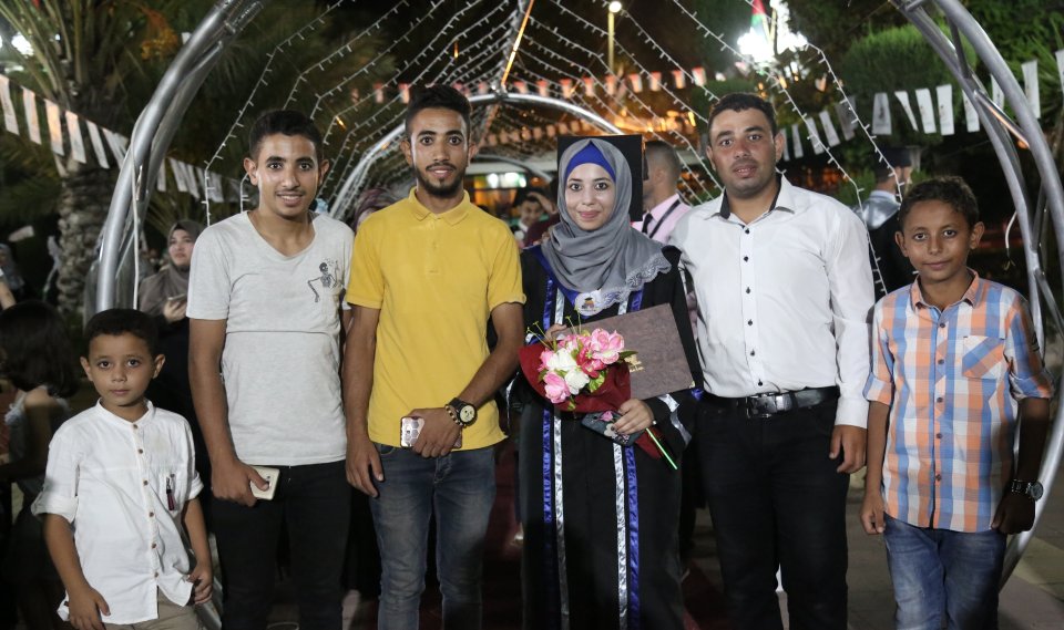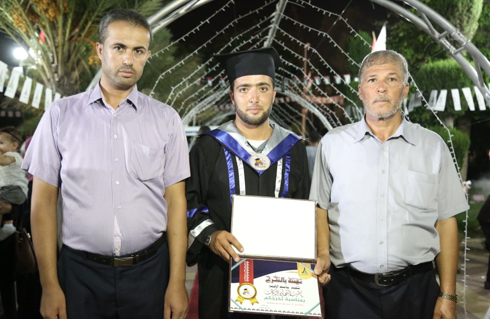 تخرج الطالب الناجي الوحيد من عائلته بعد استشهادهم في حرب 2014 أ. محمد نادر عطا الأغا، الطالبة هبة سهيل ابراهيم الأغا( الحاصلة علي ترتيب الثاني على الدفعة بمعدل 84.2 تخصص علم اجتماع)، الطالبتين ابتسام و هدي باسم شكري دياب الأغا، والطالبة اباء غسان كامل الأغا، الطالب محمود وجيه ابو زيد الأغا، الطالب أحمد فؤاد جبارة الأغا، الطالبة هويدة رجاء امين الأغا
