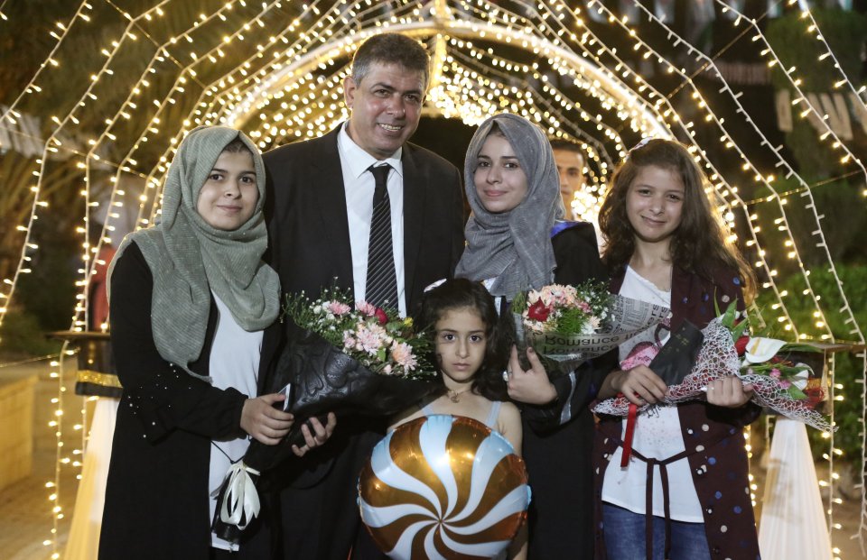 أ. عطا فضل الأغا، الطالب محمد نادر( الناجي الوحيد من عائلته بعد استشهادهم في حرب2014 )، أ. أحمد طاهر