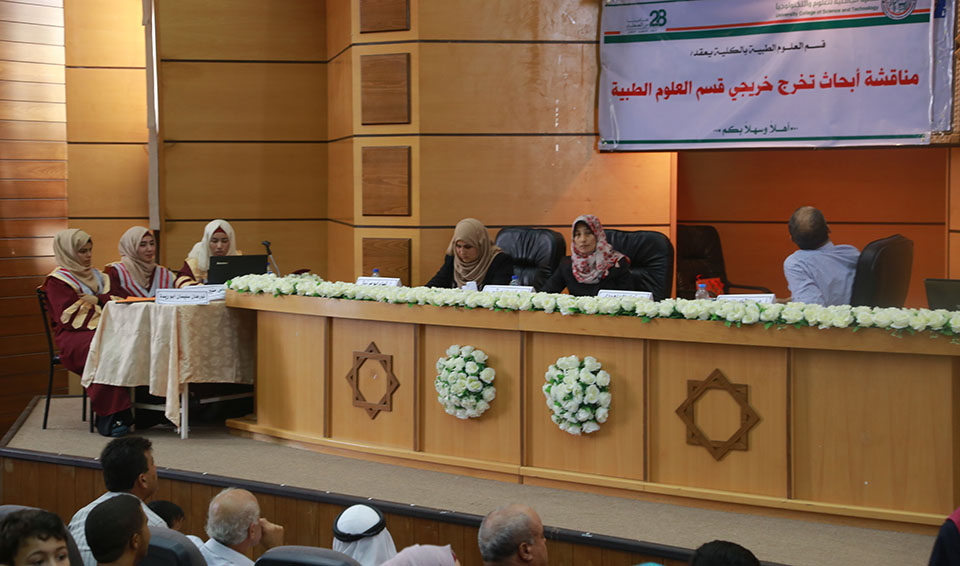 خان يونس الكلية الجامعية للعلوم والتكنولوجيا قسم العلوم الطبية المخبرية مناقشة بحث للطالبات إيناس الشوربجي، إيمان النجار و نورهان أبو ريدة تكونت لجنة المناقشة من د. لمياء صقر و د. زياد الداودي ومشرفة البحث لمياء أبو مرزوق وكان المشروع تحت عنوان: