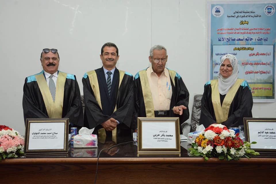 مصر- الاسماعيلية- حصول الباحث حاتم أسعد صالح الأغا على شهادة الدكتوراة في المحاسبة من جامعة قناة السويس حيث كانت الرسالة بعنوان تطوير النظام المحاسبي لمنشآت الأعمال الفلسطينية لقياس التكاليف الإجتماعية بهدف تقييم أهداف التنمية المستدامة، وألف مبارك.