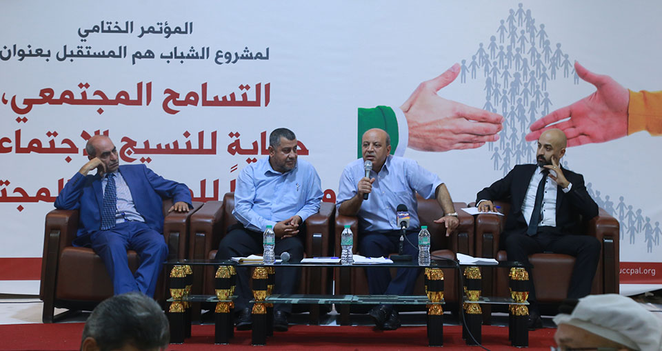 و بدأت الجلسة بكلمة سعادة المهندس عماد خالد الأغا مفوض العلاقات الوطنية بحركة فتح في قطاع غزة قائلاً ان مفهوم التسامح المجتمعي هو جزء من فكر عميق لدينا وهو الفكر الإسلامي وان هذا اللقاء هو لشريحة الشباب فنحن أيضا نعي ونفهم ان هناك مشكلة كبيرة لان قطاع الشباب هو بحاجة الي مستقبل أفضل وان مفهوم المصالحة المجتمعية هي مصالحة وطنية وليست مصالحة جزئية وان الشعب الفلسطيني أثبت دائما انه يتعالى علي جراحه ومن خلال حكومة واحدة واستراتيجية موحدة من كل الفصائل نستطيع ان نحقق مستقبل افضل للشباب.