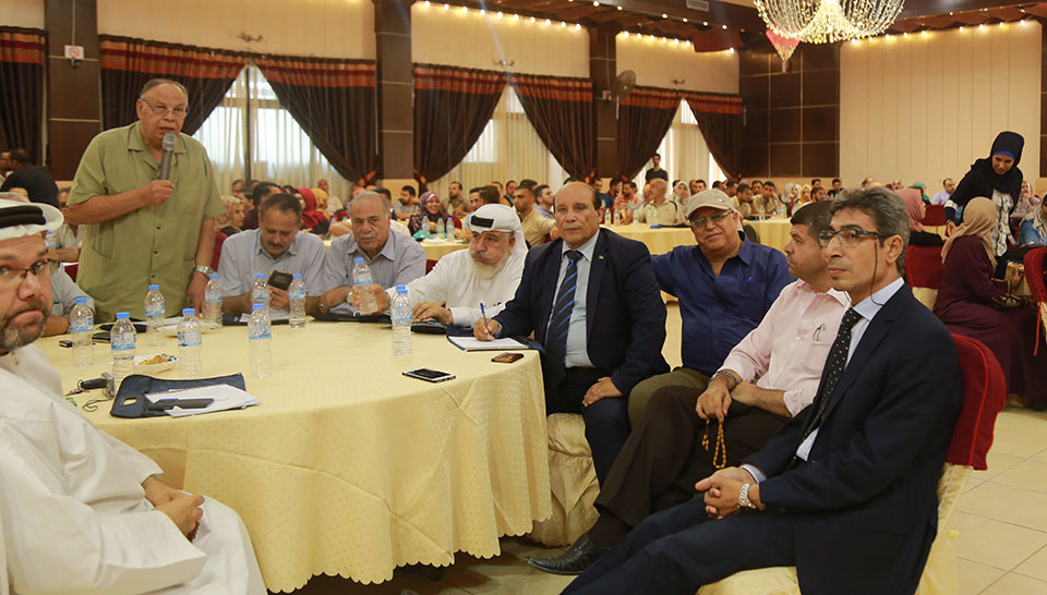 أ. فادي أبو شمالة(المدير التنفيذي للإتحاد العام للمراكز الثقافية)، سعادة المهندس عماد خالد الأغا(مفوض العلاقات الوطنية بحركة فتح في قطاع غزة)، أ. ماهر ابو صبحة(عضو لجنة المصالحة المحلية- حركة حماس)، أ. صلاح ابو ركبة(عضو لجنة المصالحة المحلية- الجبهة العربية)