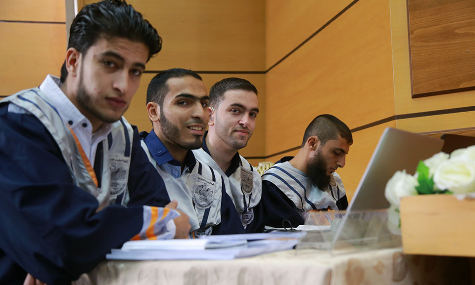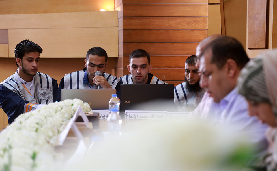الطلبة: أحمد ياسين أبو حطب، عبدالله محمد الأغا، خضر جمال أبو طه، محمد تيسير خفاجة