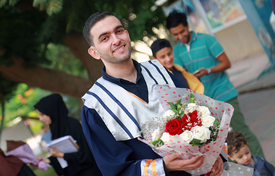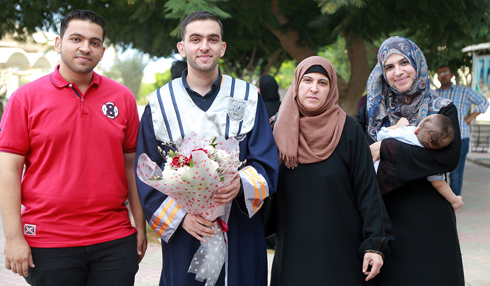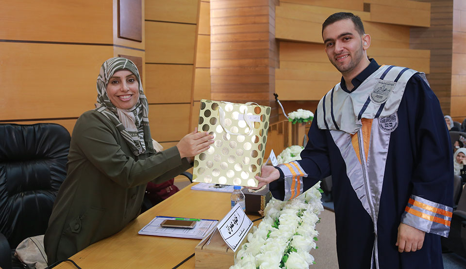تخرج الطالب عبدالله محمد مهدي الأغا وحصوله على تقدير الإمتياز في مشروع التخرج والذي كان تحت عنوان: تقييم حالة الحديد عند الحوامل المصابات بتسمم الحمل في قطاع غزة