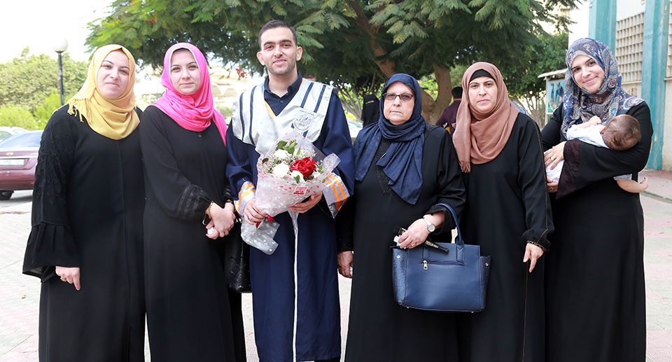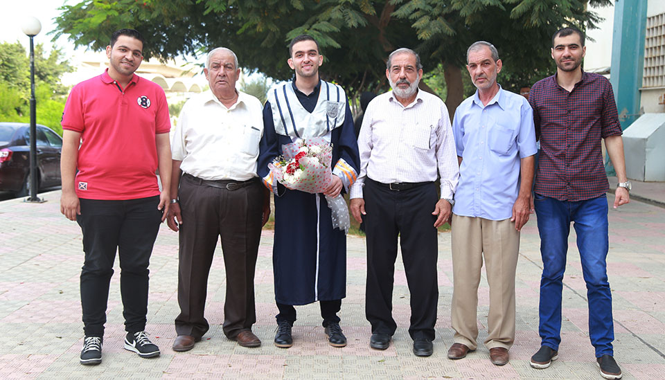 أ. عصام عزام الأغا، أ. أسامة مهدي الأغا وشقيقه أ. نظام، الخريج، د. صلاح الأغا، أحمد( شقيق الخريج)