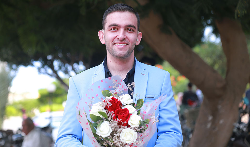 الخريج أحمد ياسين أبو حطب ووالده أ. ياسين، أ. ممتاز رمضان الأغا، الخريج
