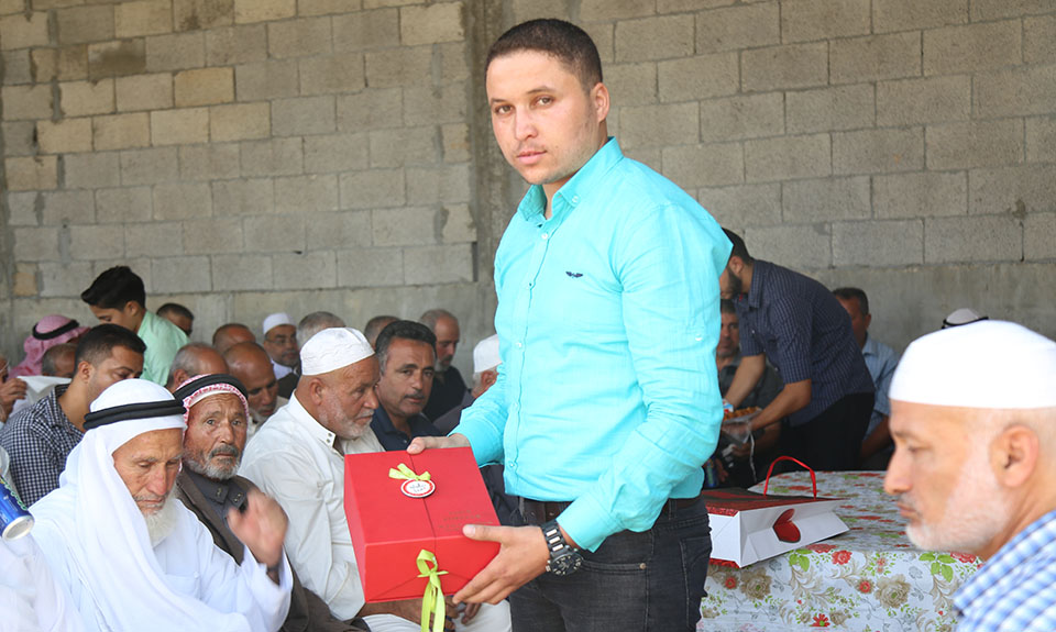 الاثنين 15-10-2018 القرارة- على بعد عشرات الامتار من المكان الذي استشهد فيه الشهيد الحسن بن علي ناجي(ابن عم العريس) أقيم حفل خطوبة أ. محمد نعيم عنترشاكر الأغا الى الانسة أسماء أحمد خليل عبدالغفور والف مبارك.