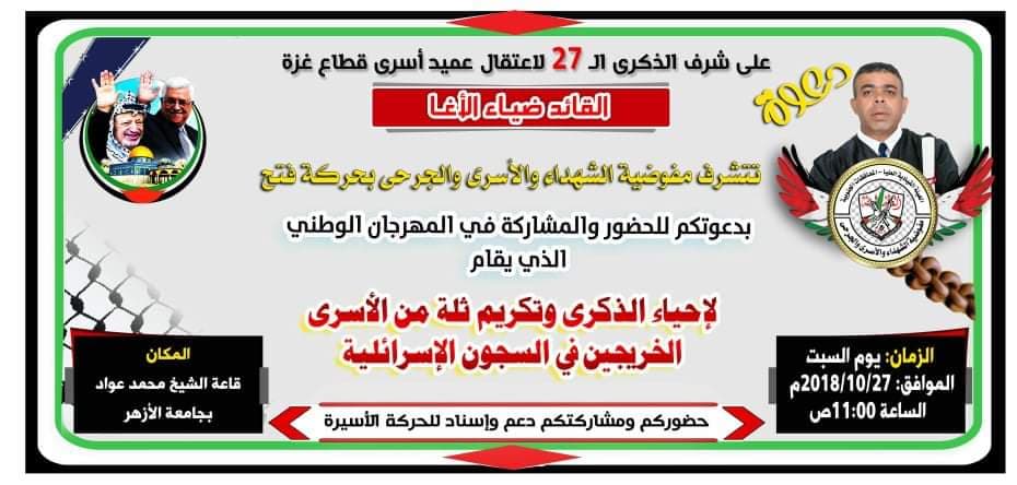 الرئيسة/متفرقات/دعوة للمشاركة في المهرجان الوطني لاحياء ذكرى وتكريم أسرى خريجين متفرقات دعوة للمشاركة في المهرجان الوطني لاحياء ذكرى وتكريم أسرى خريجين تاريخ النشر : الخميس | 25-10-2018 | 21:02 3204 العنوان: غزة- جامعة الأزهر- قاعة الشيخ محمد عواد يوم السبت الموافق 27-10-2018- الساعة 11 صباحاً بالتوقيت الشتوي اضغط هنا للتواصل أو التعرف على أ. ضياء زكريا شاكر الأغا يمكنك تلقي أحدث الأخبار أول بأول بانضمامك لإحدى مجموعات الواتساب الخاصة بالعائلة من خلال الضغط هنـا اظهر المزيد