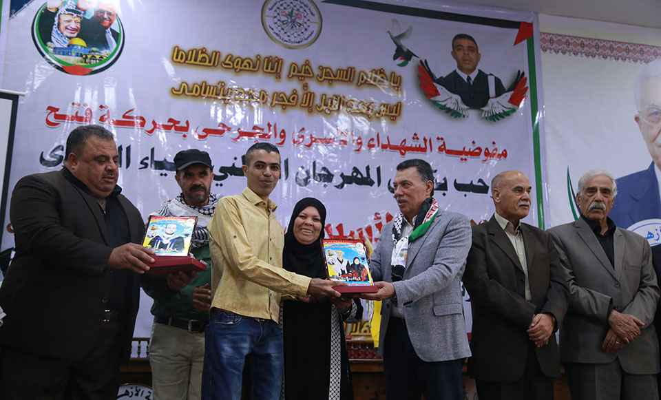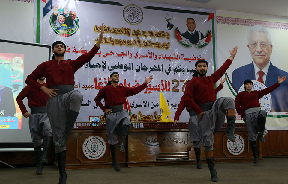 غزة- جامعة الأزهر- قاعة الشيخ محمد عواد السبت الموافق 27-10-2018- مفوضية الشهداء والأسرى والجرحى بحركة فتح تقيم مهرجان تكريم ثلة من الأسرى الخرجين في سجون الإحتلال الإسرائيلي وذلك على شرف الذكرى الــ 27 لإعتقال عميد أسرى قطاع غزة القائد ضياء الأغا(حكم عليه 99 عاماً، بعد أن قتل ضابط موساد إسرائيلي برتبة كبيرة و يعمل خبير كمبيوتر في مستوطنة جاني تال غرب منطقة السطر الغربي، اعتقل بتاريخ في 10-10-1992