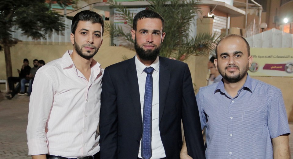 الخريج يتوسط أ.وسام زهير الاغا، أ.بشير نزيه الاغا