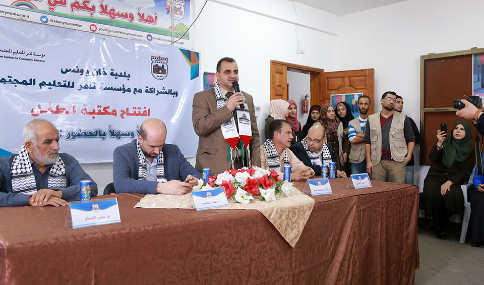 خان يونس- مكتبة البلدية العامة- السبت 10-11-2018- إفتتحت بلدية خان يونس ومؤسسة تامر للتعليم المجتمعي مكتبة الطفل وذلك في إطار المساعي المبذولة لخدمة قطاع الطفولة وتعزيز الدورا لثقافي التي تؤديه المكتبة في المجتمع الفلسطيني.