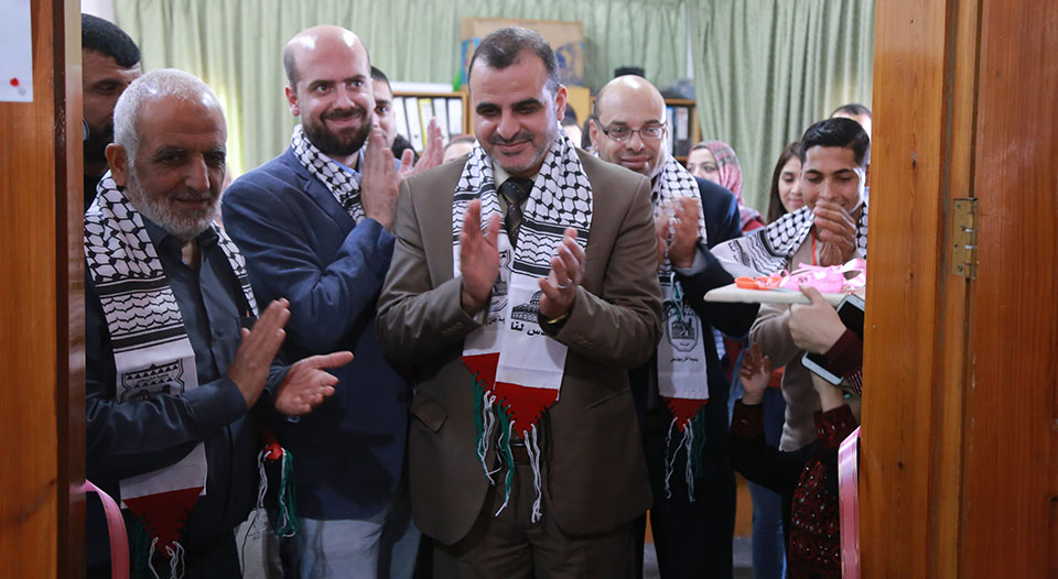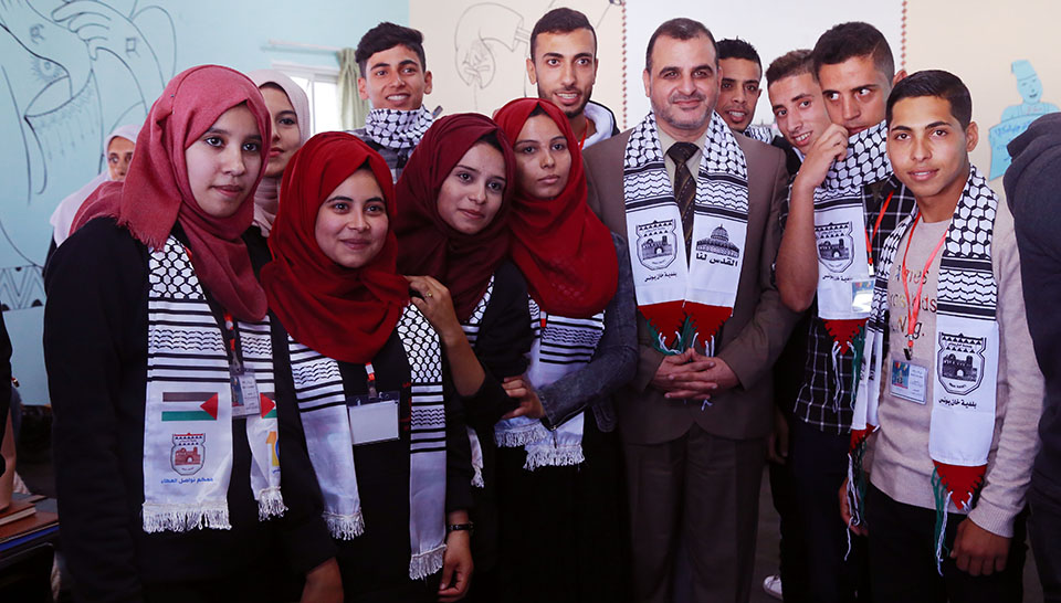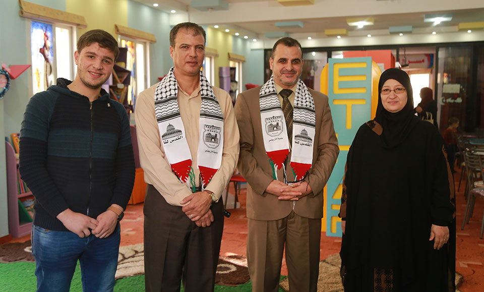 أ. أيمن القدرة(رئيس قسم العلاقات العامة) ، د. مروان المصري (مسئول الأنشطة والمراكز الخارجية)، م. علاء الدين البطة(رئيس بلدية خان يونس)، أ. أحمد عاشور(مدير مؤسسة تامر للتعليم المجتمعي)، م. يحيى الأسطل (رئيس بلدية خان يونس السابق)