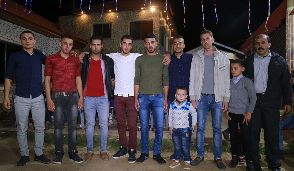 مهران سفيان (شقيق العريس)، ضياء عدلى فروانة (شقيق العروس) مأمون سفيان الاغا (شقيق العريس)، أ.هيثم بشير الأغا، الحاج سعيد ربيع الاغا، العريس، محمد حافظ شراب (ابن خال العريس) السيد محمد سعد الدين (عديل العريس) مراد عبد الرحمن اللحام (زوج شقيقة العريس)