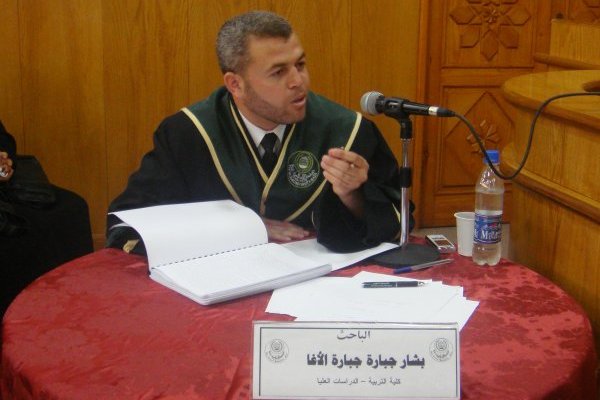 الجامعة الاسلامية بغزة- مبنى القدس- الموافق 26-05-2009 مناقشة رسالة الماجستير- تخصص تربية - في مجال الصحة النفسية للطالب بشار صبحي (جبارة) جبارة فالوجي الأغا، وألف مبارك.