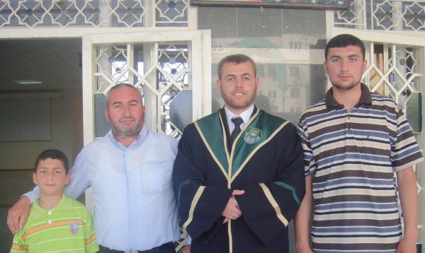 السادة: د. سمير قوته، د. سناء أبودقة، الحاج عاشور مسعود، د .فضل أبوهين، الباحث بشار، والد الباحث