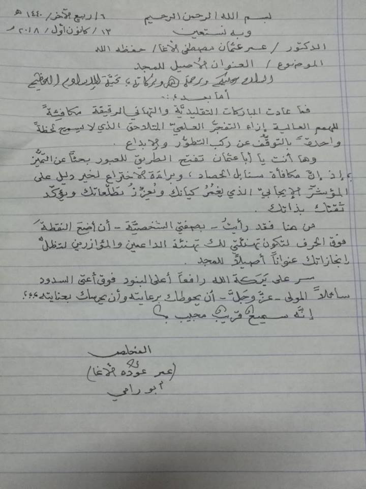 الرئيسة/متفرقات/تهنئة من أ. أبورامي للدكتور عمر عثمان متفرقات تهنئة من أ. أبورامي للدكتور عمر عثمان تاريخ النشر : الأربعاء | 12-12-2018 | 23:26 3222 اضغط هنا للتواصل أو التعرف على الدكتور عمر عثمان مصطفى عثمان الأغا يمكنك تلقي أحدث الأخبار أول بأول بانضمامك لإحدى مجموعات الواتساب الخاصة بالعائلة من خلال الضغط هنـا اظهر المزيد