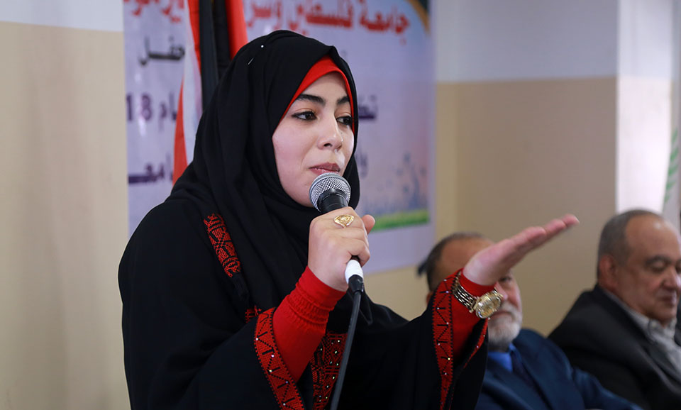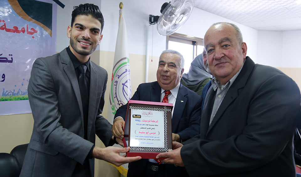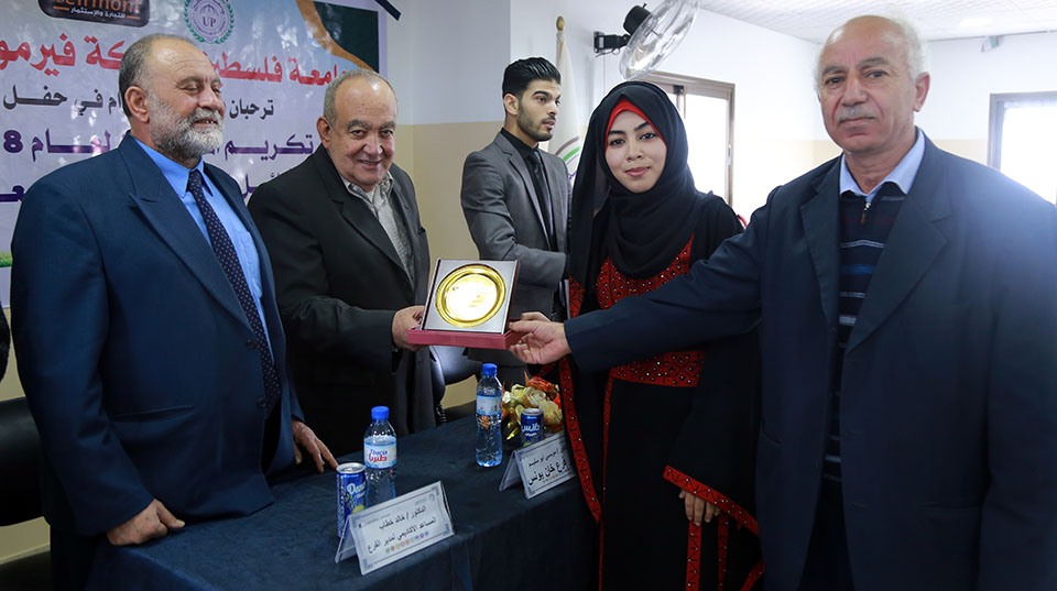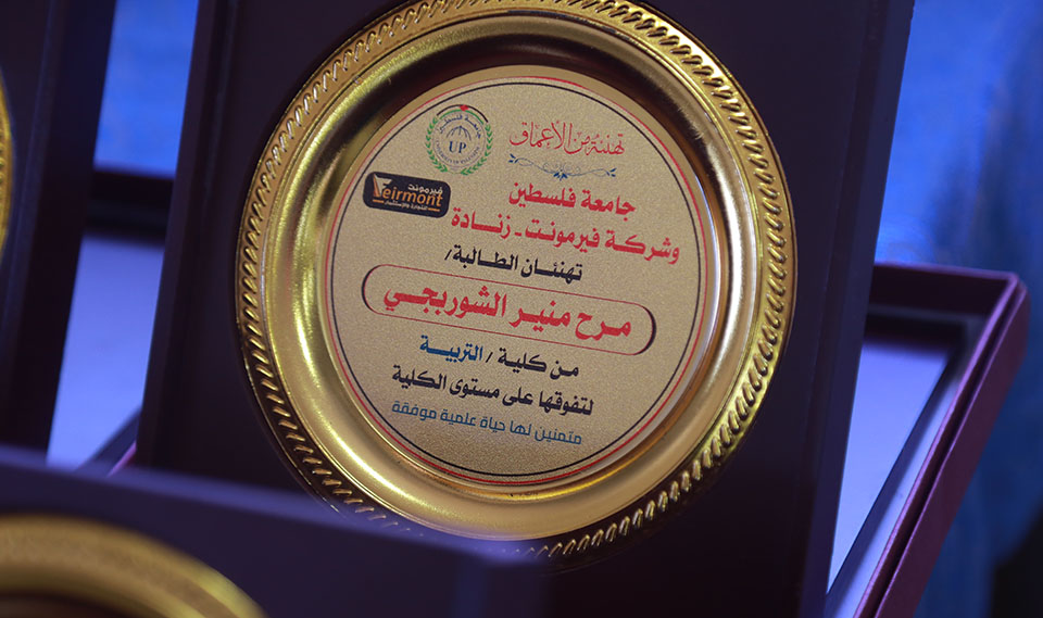 جامعة فلسطين فرع الجنوب الأربعاء 12-12-2018- حفل تكريم أوائل طلبة جامعة فلسطين والمؤثرين لعام ٢٠١٨ وقصص نجاح برعاية كريمة من شركة فيرمونت زنادة، ، وقد حصلت الطالبة مرح منير الشوربجي على درع التميز لتفوقها على مستوى الكلية