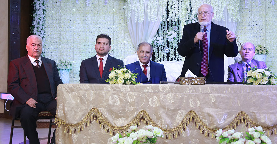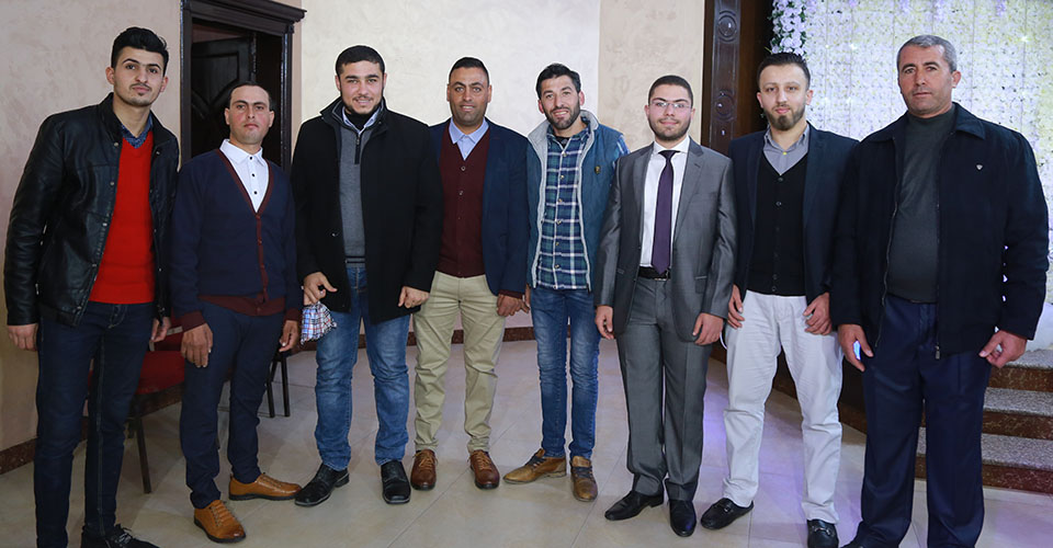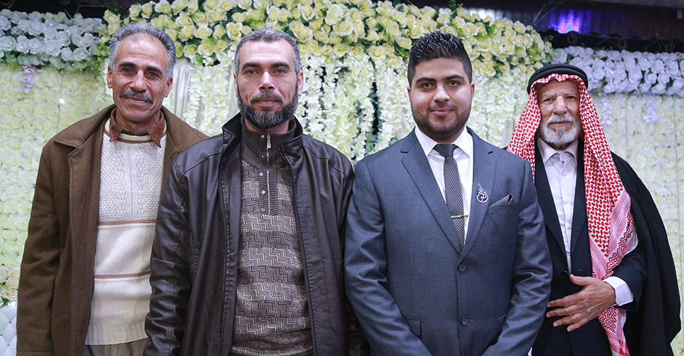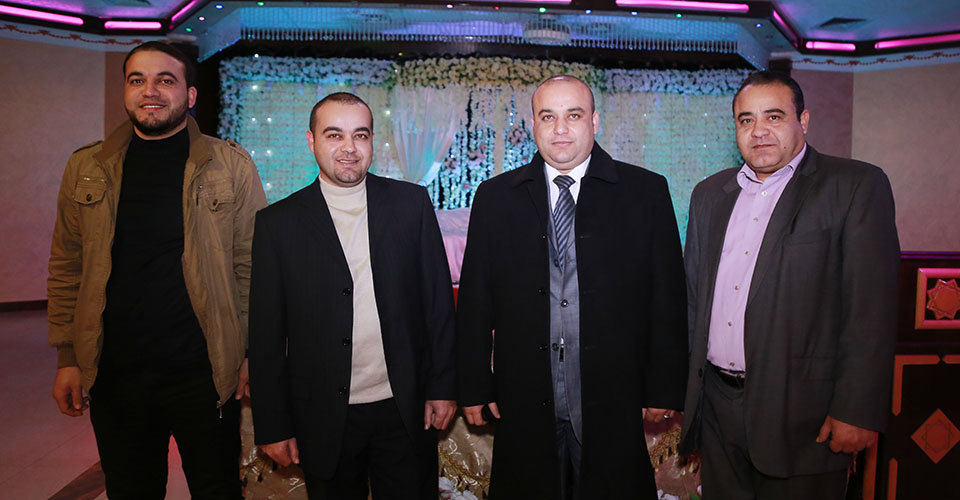 الحاج كامل الأغا، أ. محمد عودة الأغا، أ. أيمن أحمد الأغا، أ. رياض عثمان الأغا( شقيق العروس)