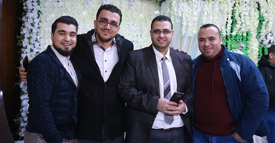 أ. لؤي فرج الأغا، أ. إسلام رياض الأغا، السيد رائد، أ. هاني محمد رمضان الأغا( زوج شقيقة العروس)