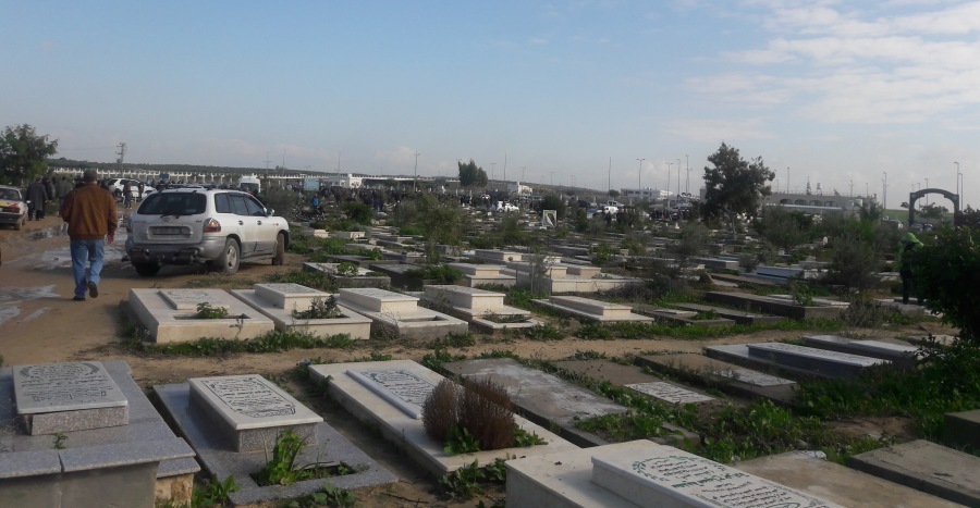 من داخل مقبرة الشهداء والتي شهدت سبع جنازات في وقت واحد