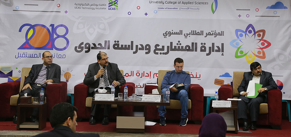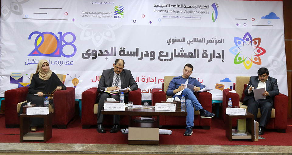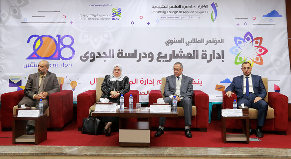 انطلقت في الكلية الجامعية للعلوم التطبيقية وقائع المؤتمر الطلابي 2018م الخاص بإدارة المشاريع ودراسة الجدوى، والذي ينظمه قسم إدارة المال والأعمال للعام الخامس على التوالي تحت شعار "معا نبني المستقبل"، وذلك بتمويل من حاضنة يوكاس التكنولوجية، وبحضور ومشاركة كل من معالي الدكتورة هيفاء الأغا وزيرة شئون المرأة، الأستاذ الدكتور رفعت رستم رئيس الكلية، الدكتور بسام الأغا رئيس المؤتمر، الدكتور سعيد الزبدة رئيس حاضنة يوكاس راعية المؤتمر، بالإضافة إلى عدد من الأكاديميين والخبراء والمختصين في عالم المال والأعمال ولفيف من مدرسي القسم والعشرات من طلبته.