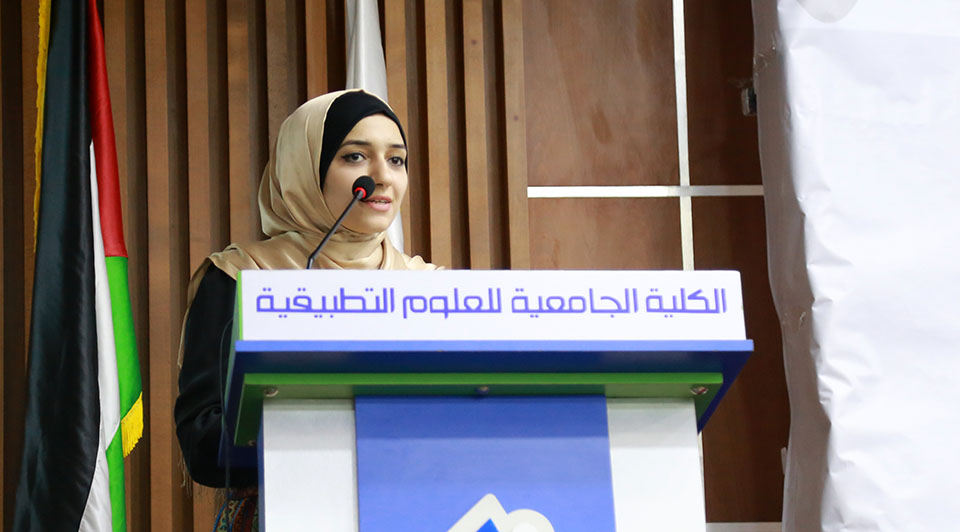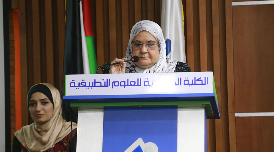 وفي كلمة معالي الوزيرة الدكتورة هيفاء الأغا قالت: "يسعدني ان اكون معكم دوما على ارض الكلية الجامعية للعلوم التطبيقية رائدة الإبداع والتميز في المجتمع الفلسطيني، والتي نكن لها ولادارتها وطواقمها الأكاديمية والإدارية كل الاحترام والتقدير على جهودهم الحثيثة لرفع مستوى وقدرات أبناءنا الطلبة ليكونوا قادرين على خدمة الوطن وبناء مؤسساته والمساهمة في رقيها ونهضتها".