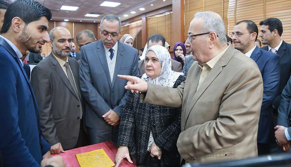 د. سعيد الذبدة، أ.د. رفعت رستم، معالي وزيرة المرأة د. هيفاء فهمي الأغا، د. بسام محمد الأغا (رئيس المؤتمر)