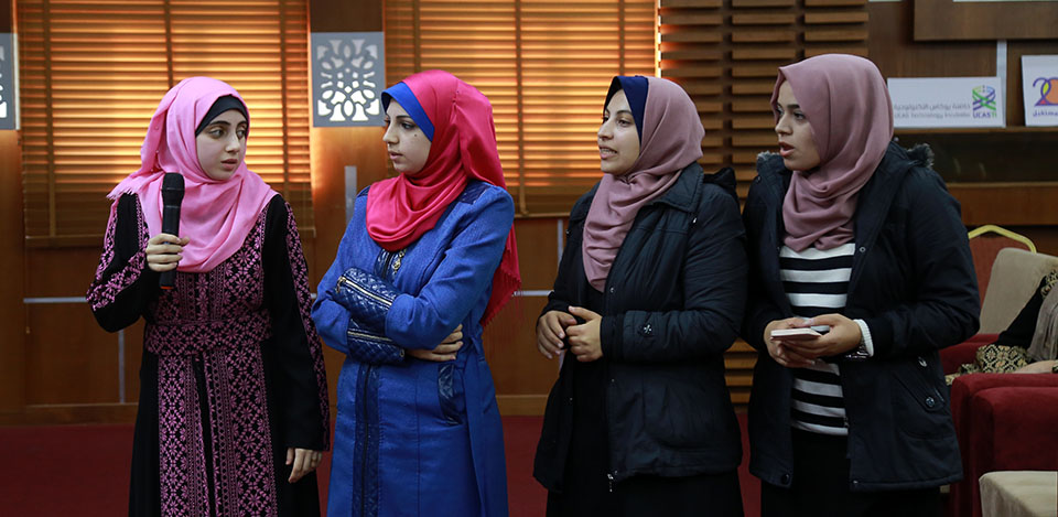 وعلى هامش فعاليات المؤتمر تم افتتاح معرض المشاريع الطلابية الذي ضم مجموعة متميزة من الأفكار الإبداعية، ومن أبرزها مشروع تصنيع حاوية مهملات ذكية تكافئ كل شخص يرمي القمامة بداخلها بخدمة إنترنت مجانية أو خدمة شحن جوال، ومشروع Celebrate وهو تطبيق إلكتروني يخدم الزبون بتصميم كعكة الاحتفال بالطريقة التي يفضلها، ومشروع Pal Fashion الخاص بتصميم وبيع المشغولات التراثية والتركيز على التطريز الفلسطيني اليدوي.