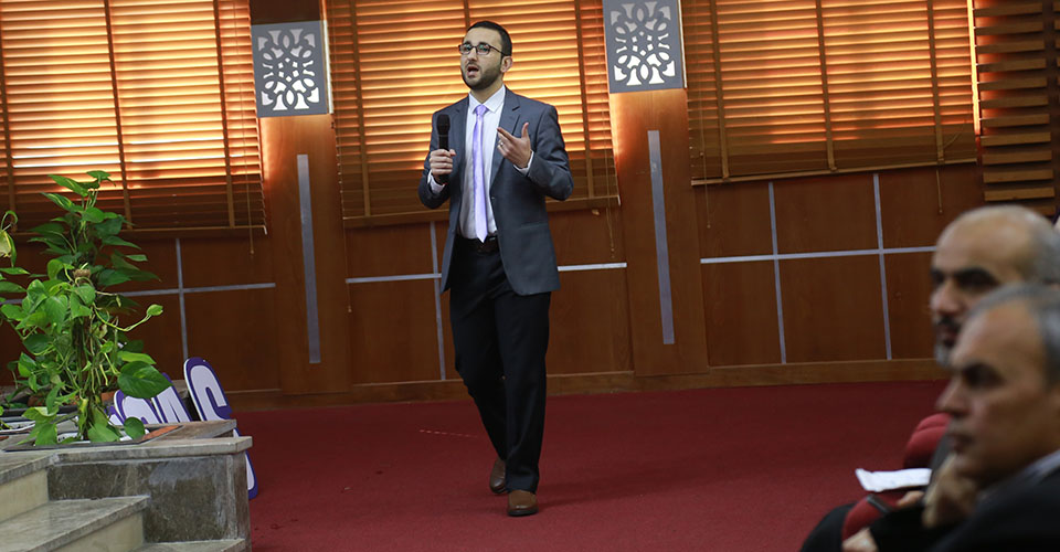 وفي مطلع الجلسة الافتتاحية رحب الدكتور بسام الأغا بالحضور، وقال: "يأتي هذا المؤتمر تتويجا لمساق إدارة المشاريع ودراسة الجدوى، والذي يهدف لإكساب الطلبة المهارات العملية الفعلية لتأسيس وبناء مشاريعهم المستقبلية، فمن خلال هذا المساق تعلم الطلبة قواعد وأصول إدارة المشاريع، وبالتوازي مع ذلك اختاروا أفكارهم الخاصة لمشاريعهم وبدأوا بتطبيق ما تعلموه على تلك المشاريع، حيث جاءت مشاريع الطلبة في ثلاث مجالات مختلفة هي المجال التكنولوجي والمحافظة على البيئة وإعادة التدوير والزراعة غير التقليدية".