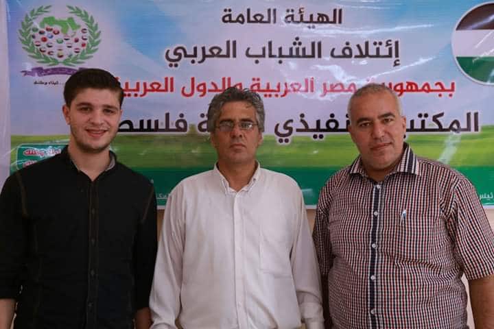 أ. ياسر محمد الأغا( اللجنة الإعلامية لإئتلاف الشباب العربي)،عيد حمدان شراب (نائب رئيس إئتلاف الشباب العربي)، أ. محمد عماد شبير ( عضو الإئتلاف- محافظة خان يونس)
