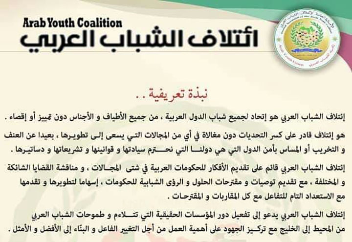 وهذا القرار الإدارى الأول لإئتلاف الشباب العربي على مستوى الوطن العربي.