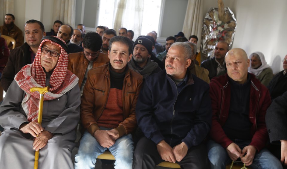 أ. عبد الكريم( عم العروس)، أ. خليل، أ. أحمد سليمان(زوج شقيقة العريس)، العريس، أ. يوسف سليمان(زوج شقيقة العريس)، أ. عاهد، أ. حمدان نايف