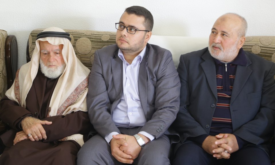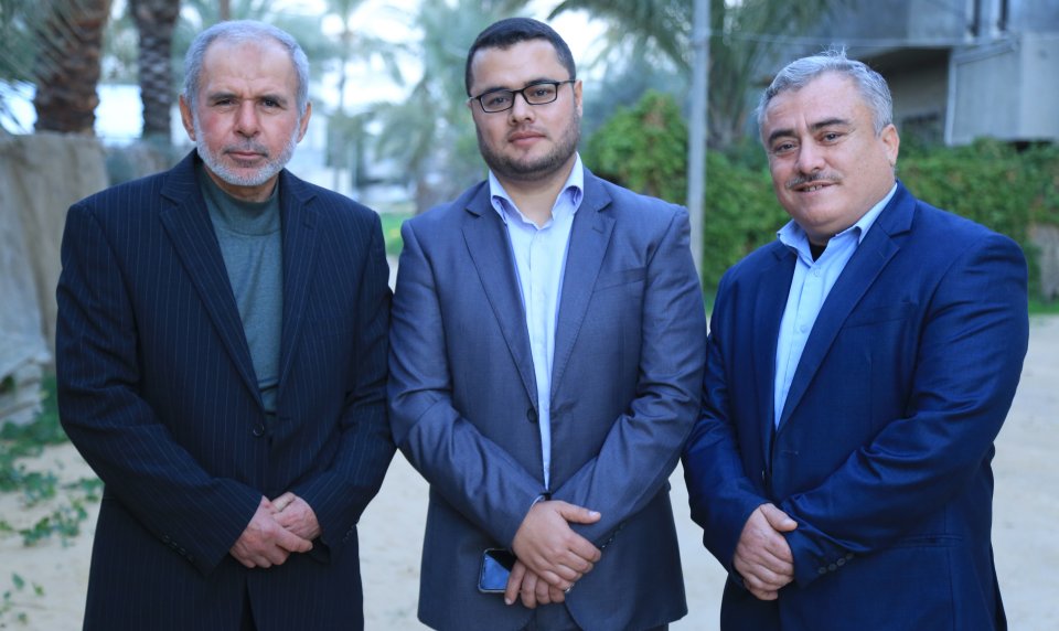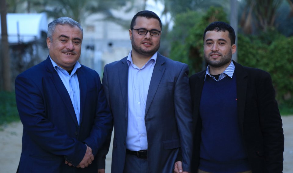 أ. خالد عودة( خال العريس)، الحاج فتحي( جد العروس)، د. وجيه(والد العروس)
