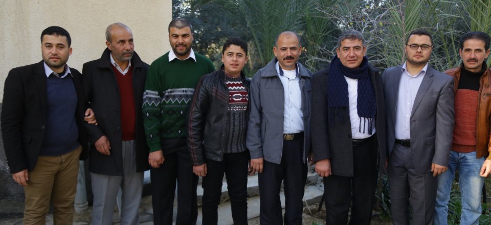 أ. يحيى سليمان، م. أمان خالد، أ. حمدان يحيى، أ. هشام عثمان، العريس وشقيقيه أ. عاهد أ. خليل، أ. ناجي قاسم، م. عماد خالد، أ. محمد سليمان، أ. اياد نظام، أ. زهير ابراهيم، أ. أمجد نعيم وشقيقه أ. يوسف