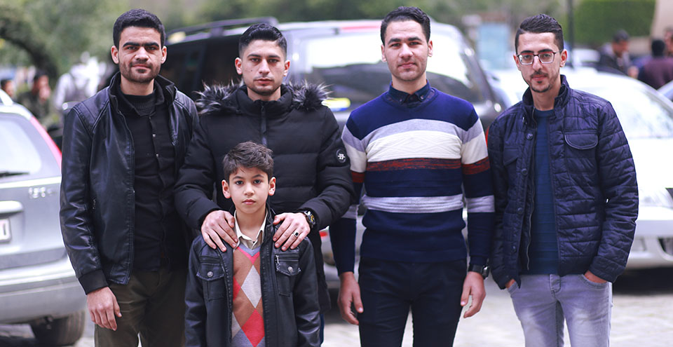 أ. بركات الفرا (صديق الباحث)، محمد باسم (إبن خال الباحث)، محمد وبراء شقيقا الباحث، ايهاب باسم (ابن خال الباحث)