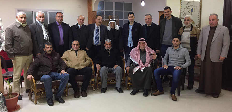 أ. بركات الفرا، أ. د. محمد رمضان الأغا، الباحث، أ. إياد نظام الأغا، أ. عمر عودة الأغا، أ. باسم جابر الأغا، الحاج محمد صالح الأغا، الحاج سعيد ربيع الأغا