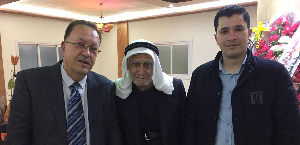 الباحث، الوزير أ. د. محمد رمضان الأغا، أ. علاء فهمي الأغا