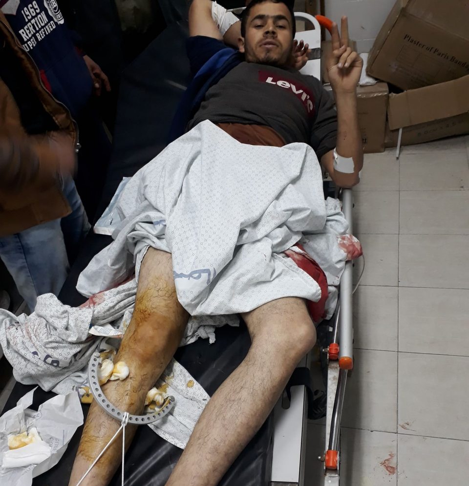 الجمعة الموافق 22-02-2019 إصابة الشاب جابر سمير جابر فالوجي الأغا 26 عاما بعيار ناري في الفخد الايمن ادى الى كسر في الحوض واصابته متوسطة الخطورة وذلك خلال مشاركته في مسيرات العودة شرق خان يونس، وتم تحويله من مشفى غزة الأوربي إلى مجمع ناصر الطبي، الدعاء له بالشفاء والسلامة التامة.