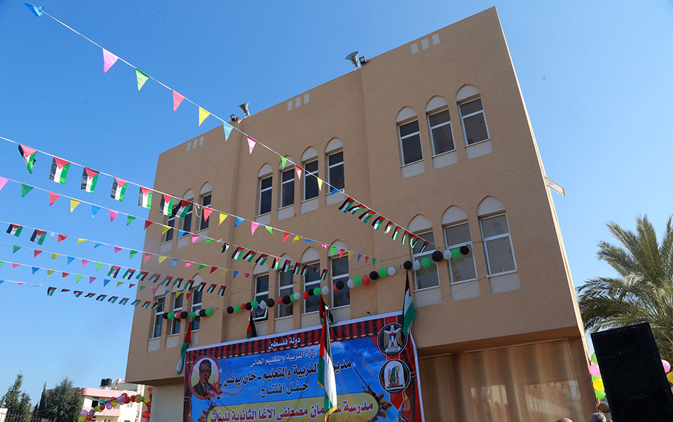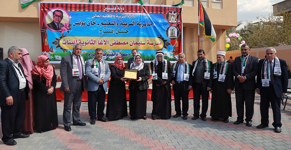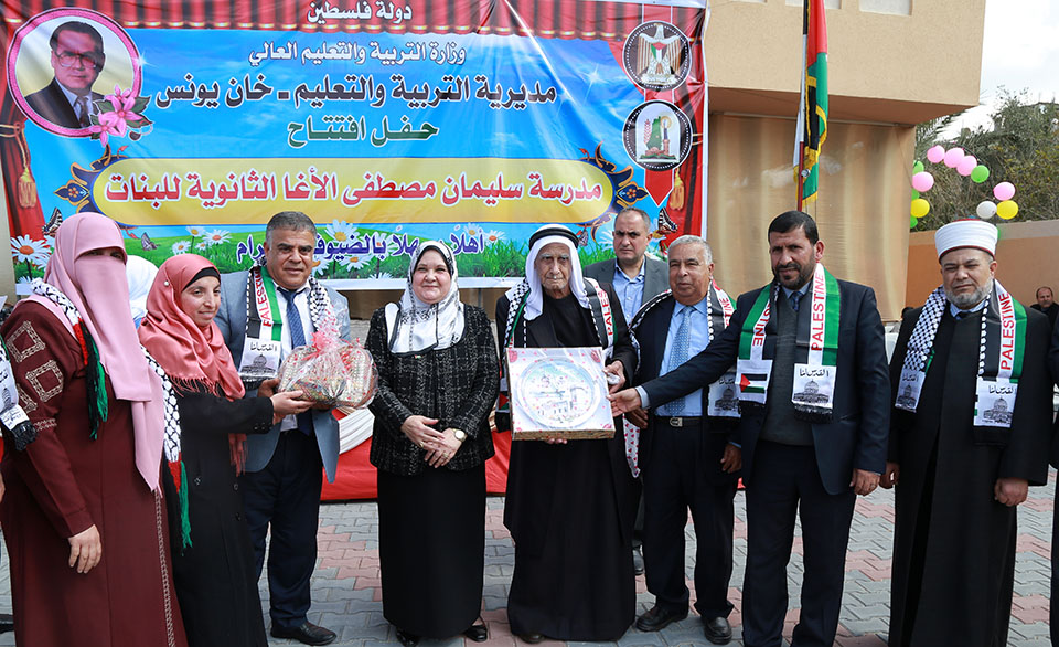 افتتحت وزيرة شئون المرأة الدكتورة هيفاء الأغا مدرسة سليمان مصطفى الأغا الثانوية للبنات غرب مدينة خان يونس جنوب قطاع غزة وبحضور الدكتور أحمد الشيبي محافظ مدينة خانيونس، والدكتور زياد ثابت وكيل وزارة التربية والتعليم، و المهندس علاء البطة رئيس بلدية خانيونس، والعديد من الوجهاء والاعيان وأولياء أمور الطالبات.