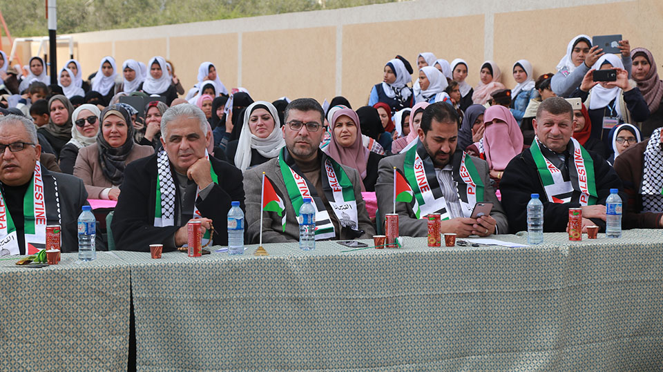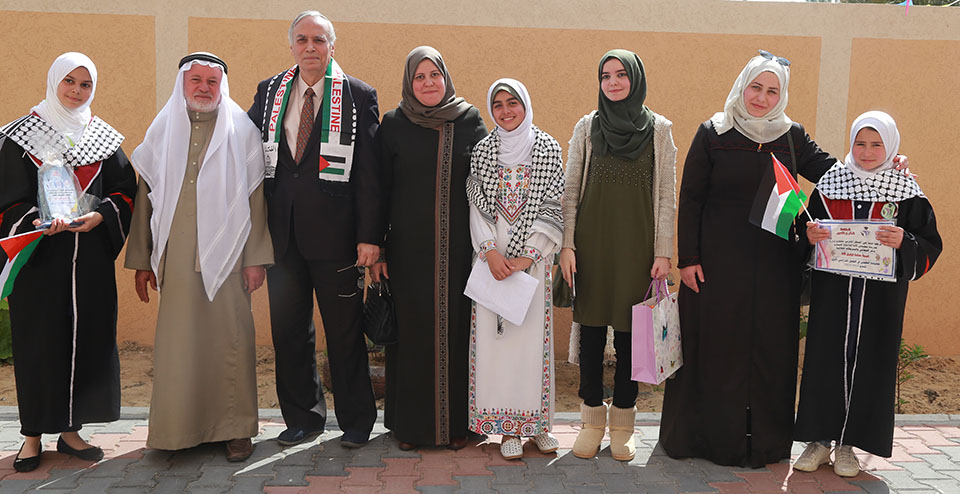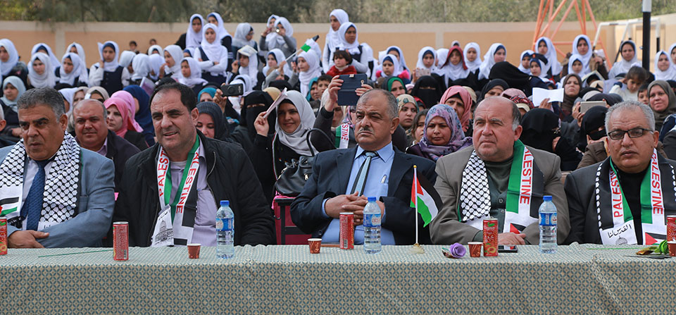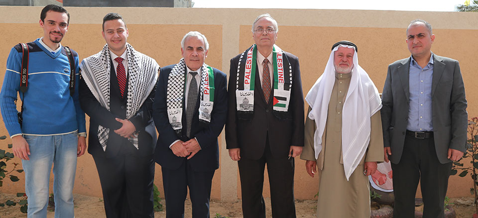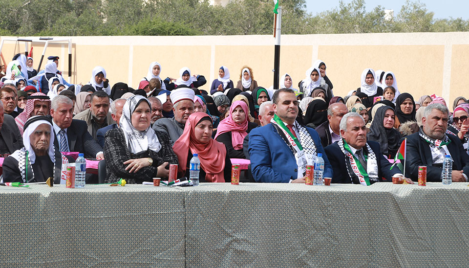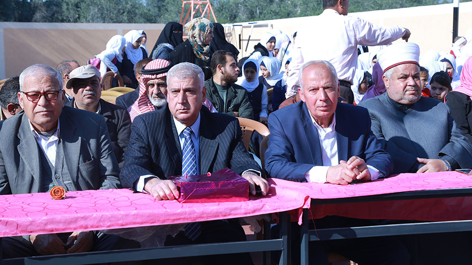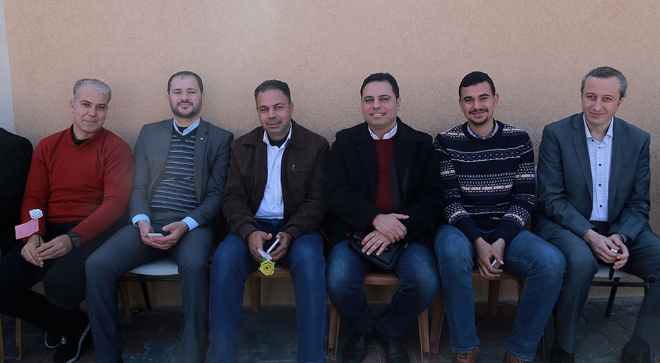 فضيلة الشيخ غحسان عاشور، د. زياد ثابت، د. أحمد الشيبي، مختار عائلة الأغا العم وديع، د. هيفاء الأغا، أ. عبد الرحيم الفرا، أ. عايدة ابو حطب(مديرة المدرسة)