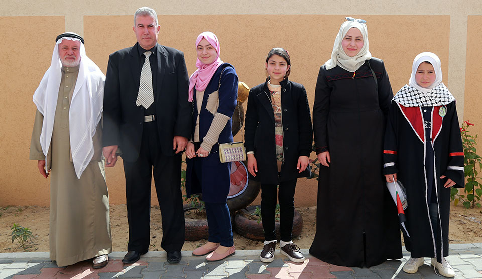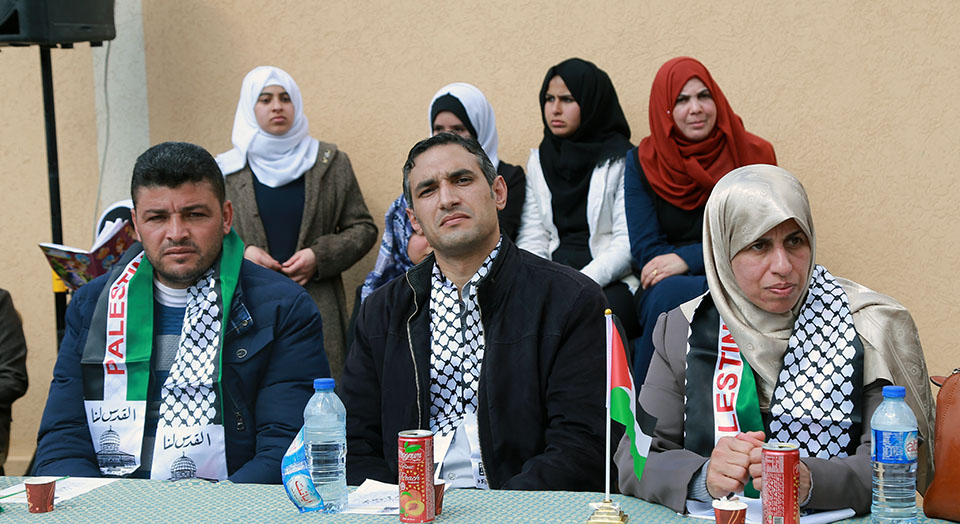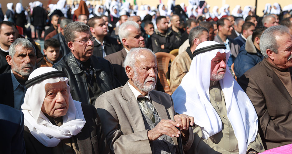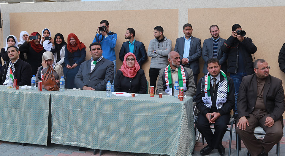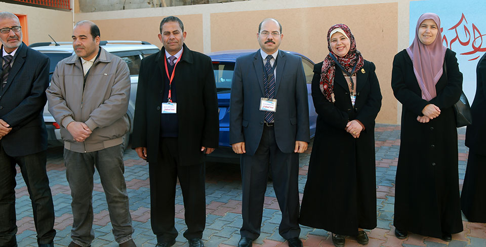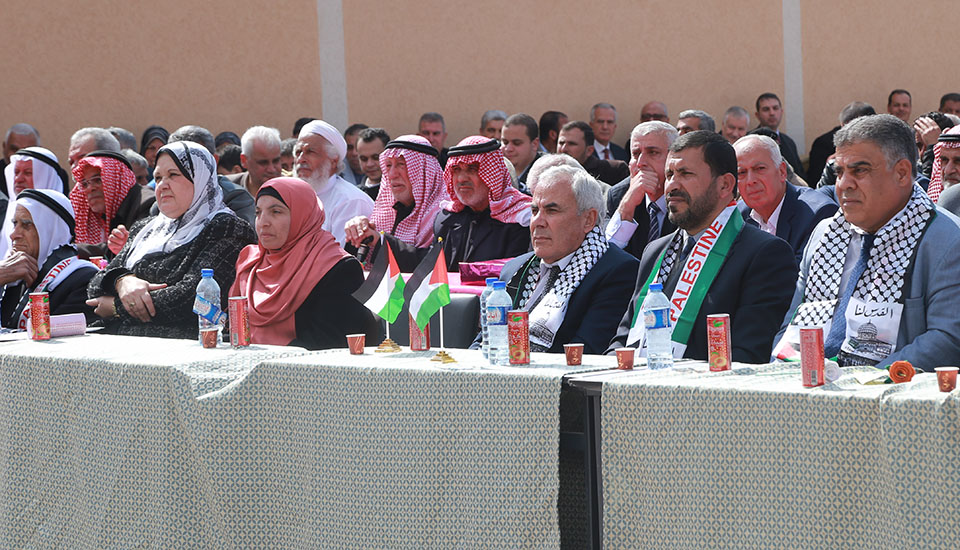 فضيلة الشيخ غحسان عاشور، د. زياد ثابت، د. أحمد الشيبي، مختار عائلة الأغا العم وديع، د. هيفاء الأغا، أ. عبد الرحيم الفرا، أ. عايدة ابو حطب(مديرة المدرسة)