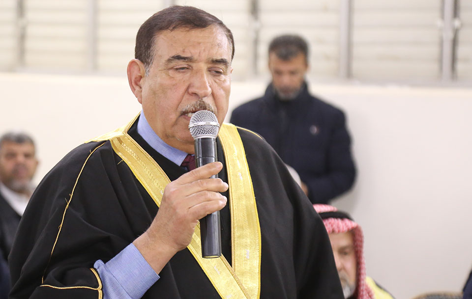 م. عماد خالد الأغا، د. سلام الاغا متحدثا باسم عائلة الأغا ومرحبا بالضيوف